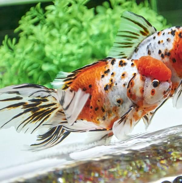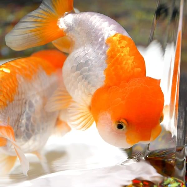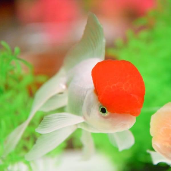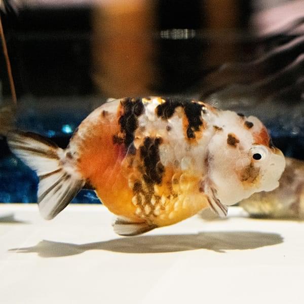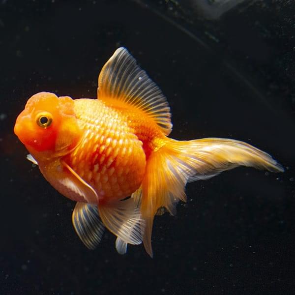 「獅子頭」と呼ばれる肉りゅう(コブ)が発達した頭と、背びれがなくぷっくりとした体が特徴。迫力のある見た目ですがチョコチョコと泳ぐ姿が愛らしく、愛好家が多く、品評会も盛んなことから”金魚の王様”とも称されます。