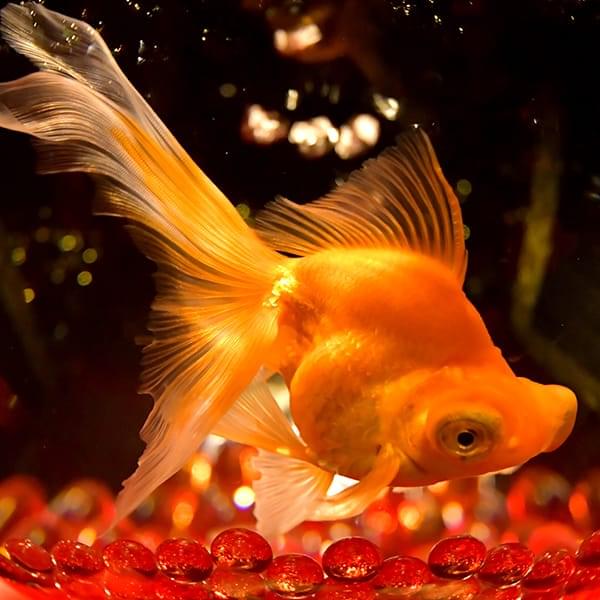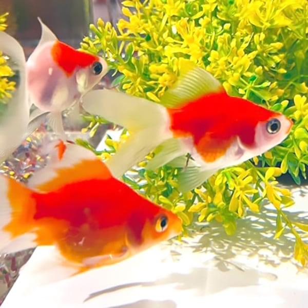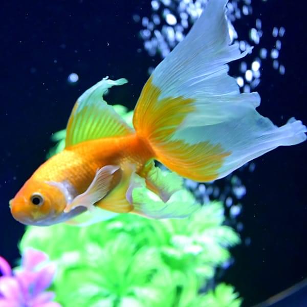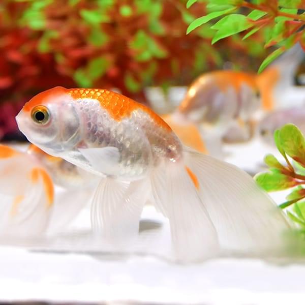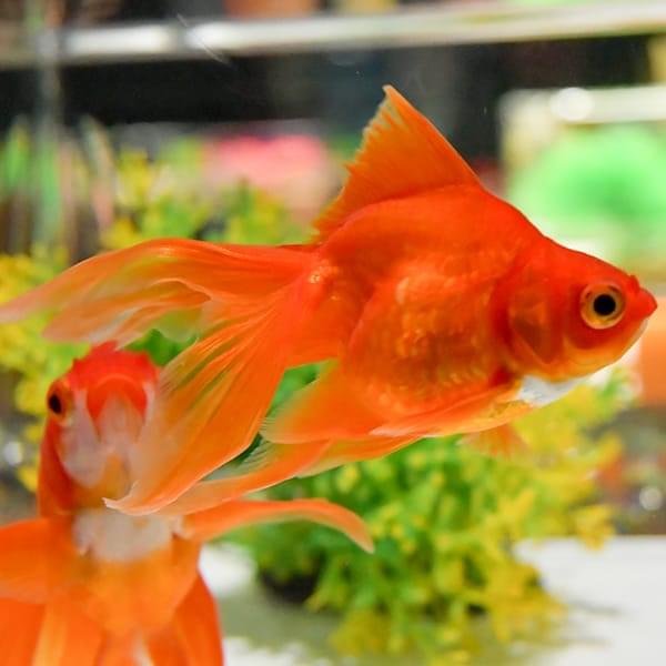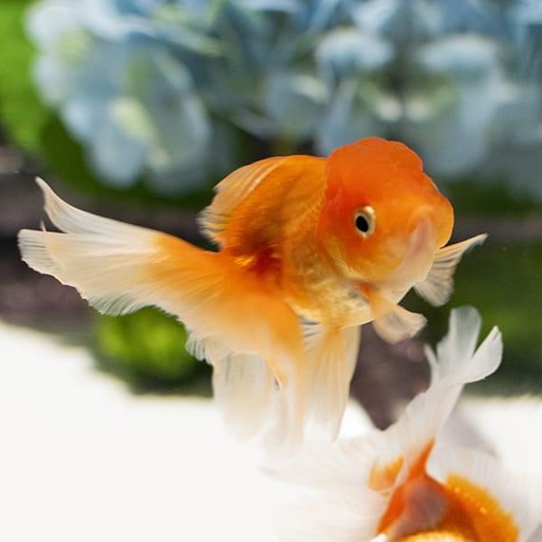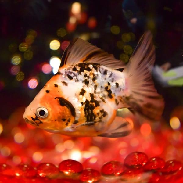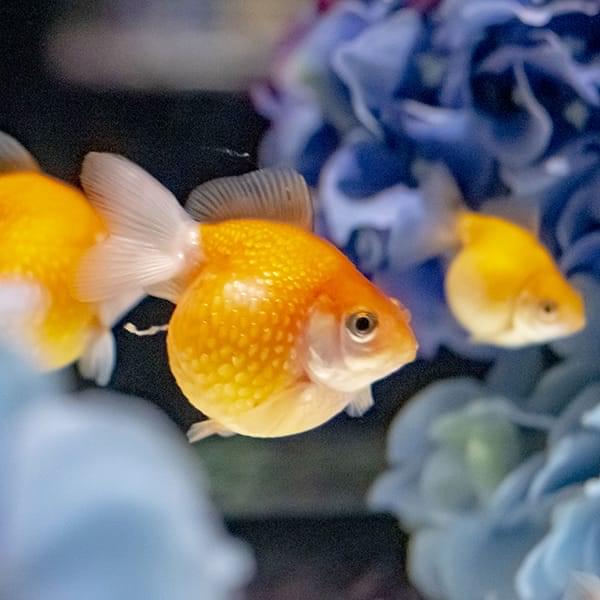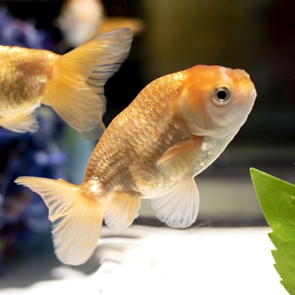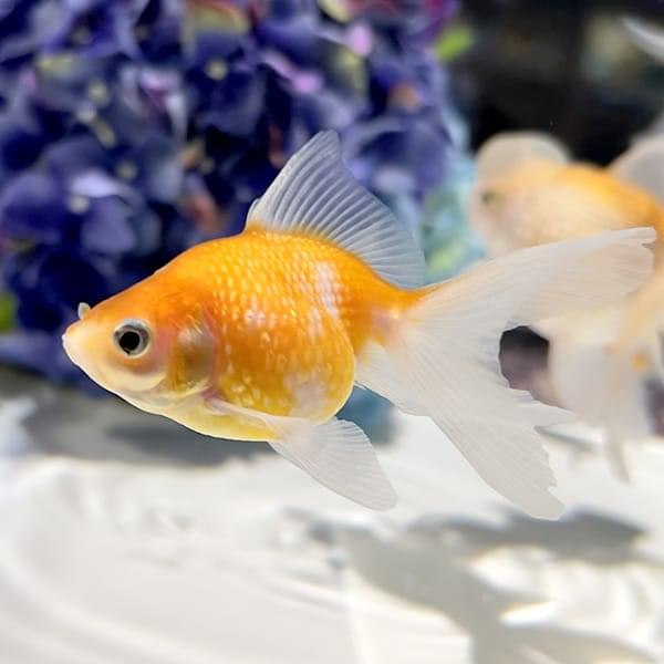 丸いフォルムと優雅な長い尾を持つ、金魚の代表的な種類です。日本では江戸時代から愛されており、金魚といえば最初にこの琉金の姿をイメージする人も多いのではないでしょうか。