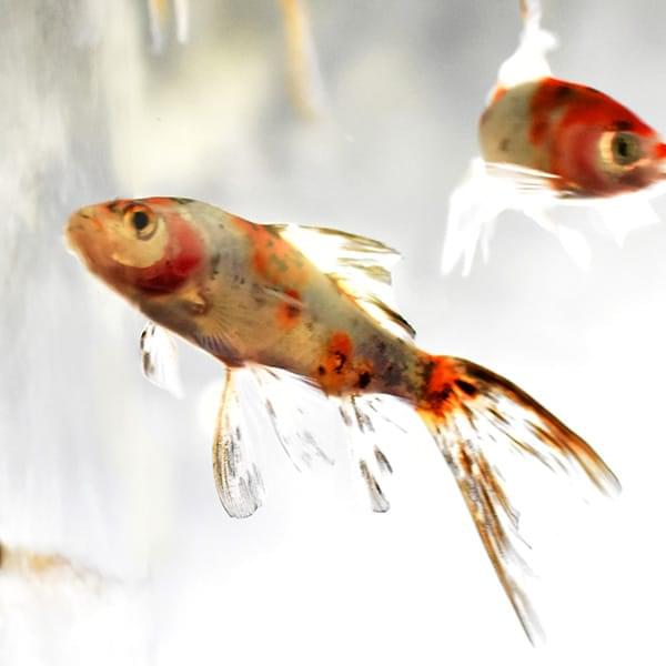 日本からイギリスに渡った朱文金が改良されて生まれた、イギリス原産の金魚。最大の特徴はハート型の尾ひれ。錦鯉のようなキャリコ柄も美しく、愛好家も多い種類です。