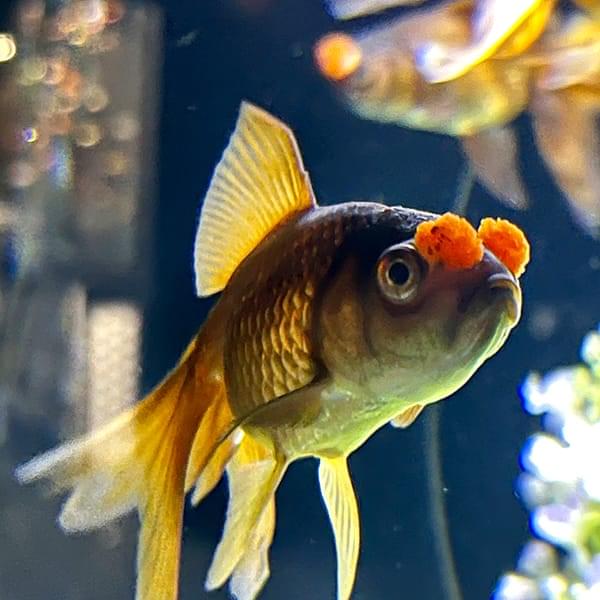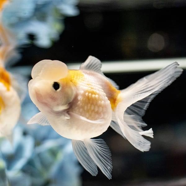珍珠鱗の1種で、頭にしわのない大きな肉りゅう(コブ)がついている金魚。丸っこい体に、丸く風船のようなこぶがついている姿がとても個性的な種類です。