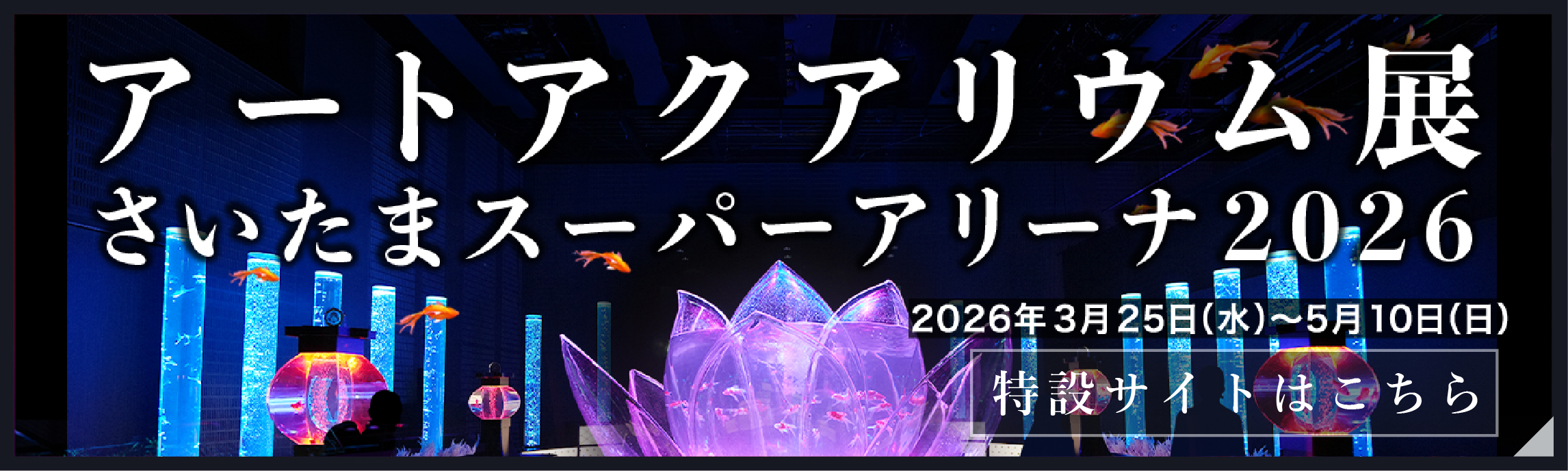 水槽作品の造形美、空間演出、五感への刺激、そして、さまざまな美しさをもつ金魚たちがつくりだす、唯一無二の幻想世界が、ここに。