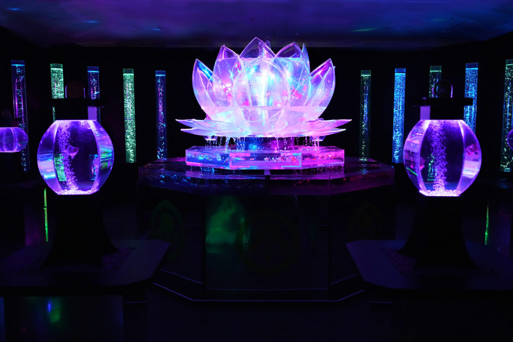 アートアクアリウムを代表する巨大金魚鉢「超花魁」が登場。その迫力をぜひご体感ください。