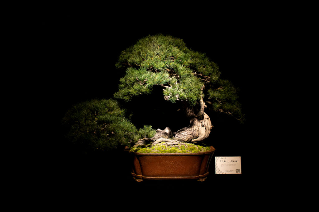 これは、「盆栽界の至宝」と呼ばれる、大宮盆栽美術館随一の名樹である五葉松「日暮し」を大宮盆栽美術館監修のもと忠実に再現した模刻版(レプリカ)です。
