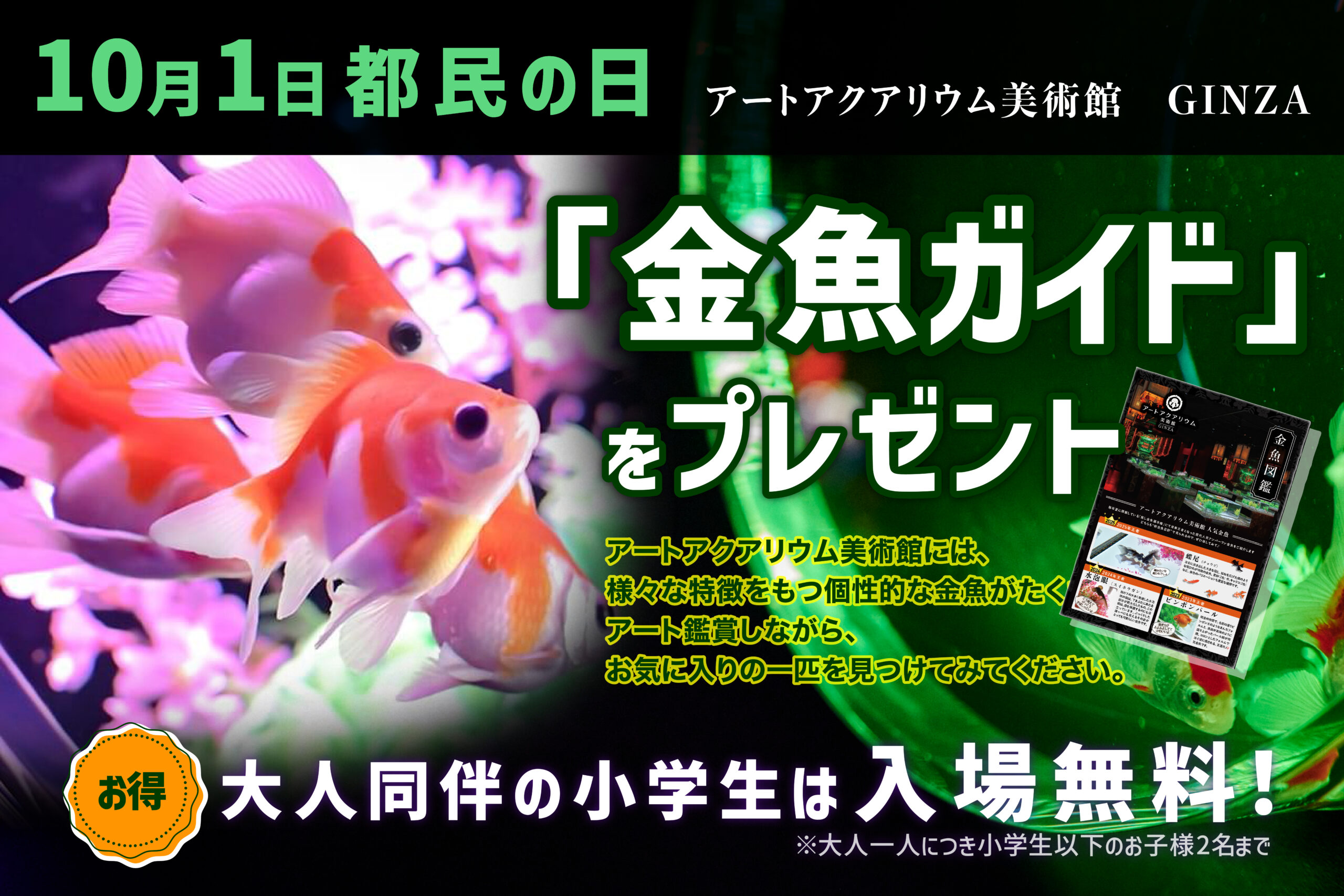 アートアクアリウム美術館 GINZA(所在地/銀座三越)では、10月1日(水)の都民の日限定で、アートアクアリウム美術館の金魚を紹介する金魚ガイド(金魚図鑑)を、無料配布いたします。