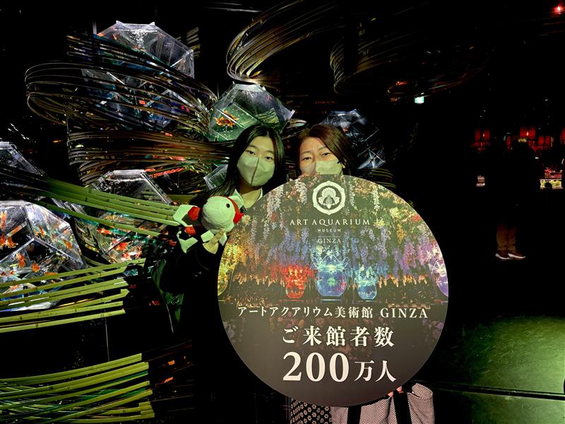 銀座開館以来200万人のご来館を機に、伝統と革新が融合する街・銀座にて、アートと金魚が織りなす幻想的な空間から皆様に非日常の感動をお届けできるよう、新たな価値創造に取り組んでまいります。