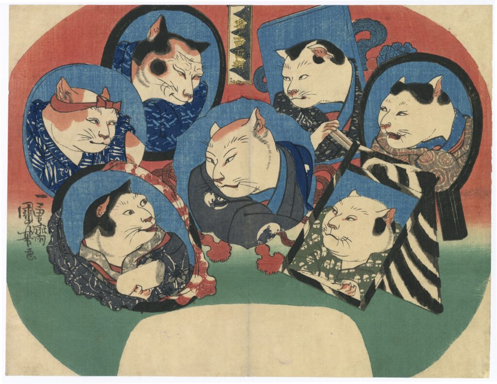 池の金魚とねこ / たとゑ尽の内 / 其まま地口 猫飼好五十三疋 / 猫の源氏 賢木 / おぼろ月猫の盛
